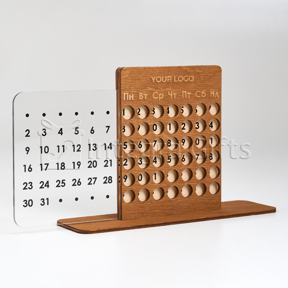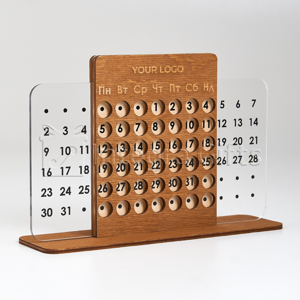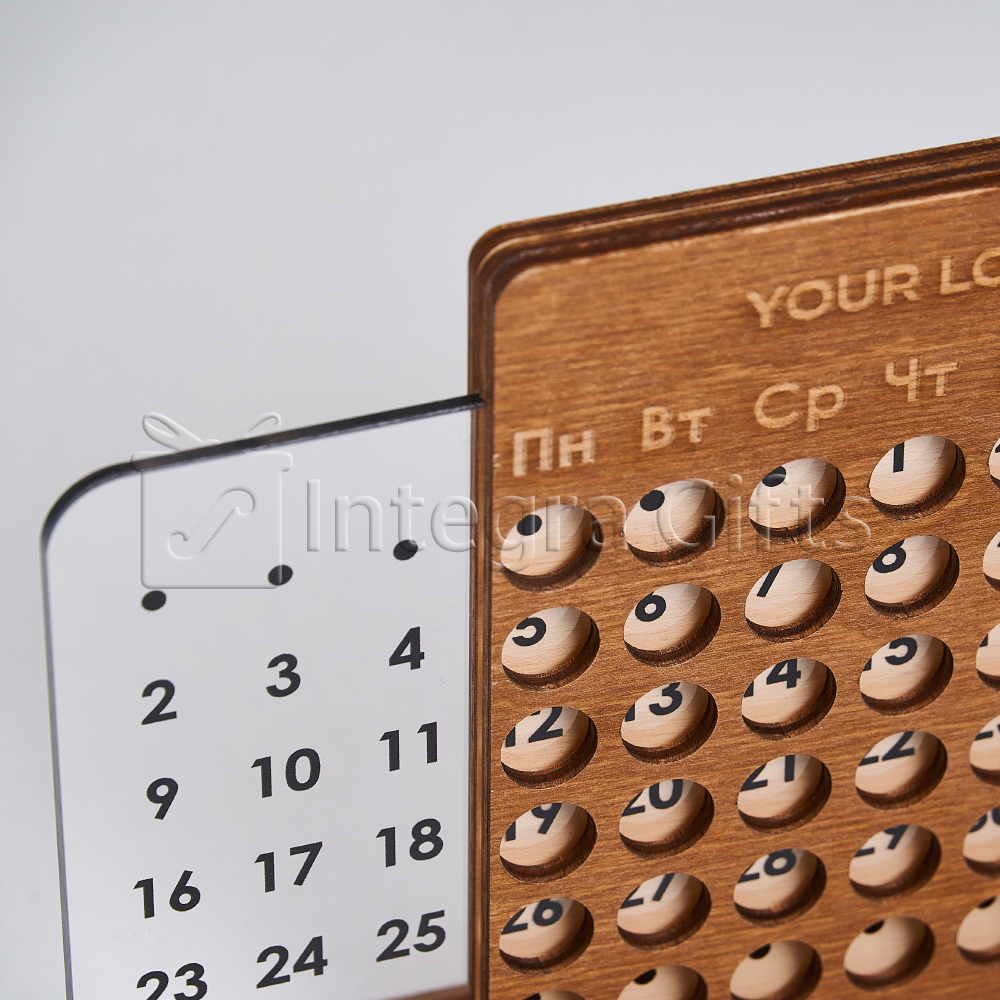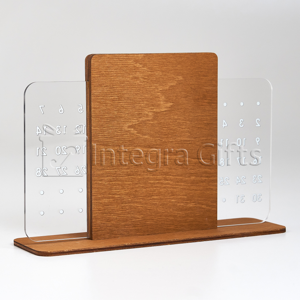 Комбінація міцної основи та прозорої акрилової вставки надає календарю легкого, преміального вигляду. Лаконічні форми та мінімалістичний стиль роблять його універсальним аксесуаром, який гармонійно доповнює інтер’єр офісу, робочого кабінету або дому.