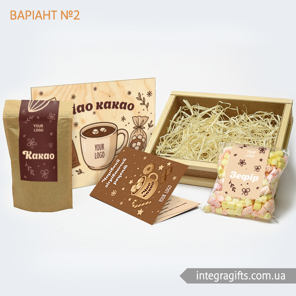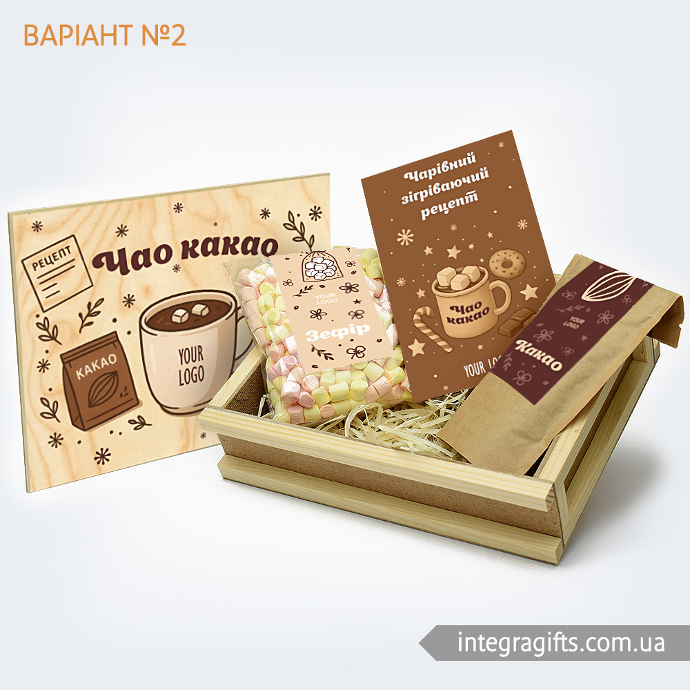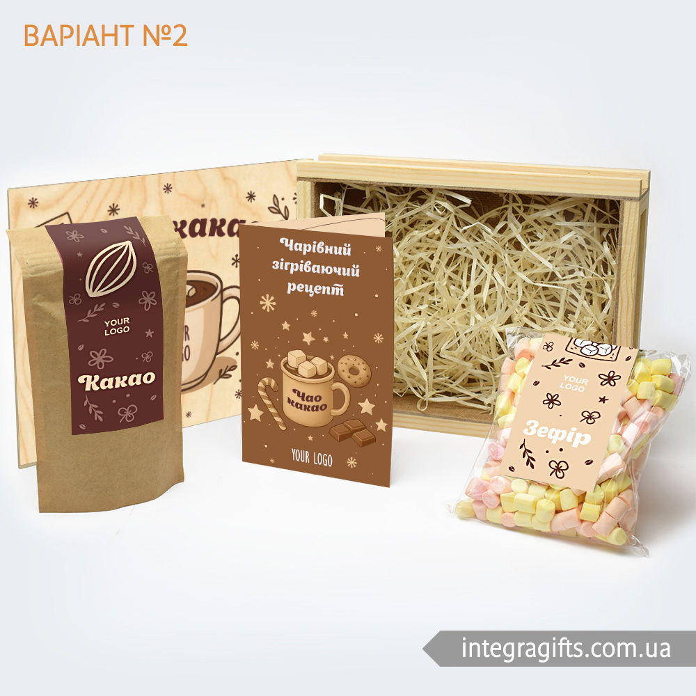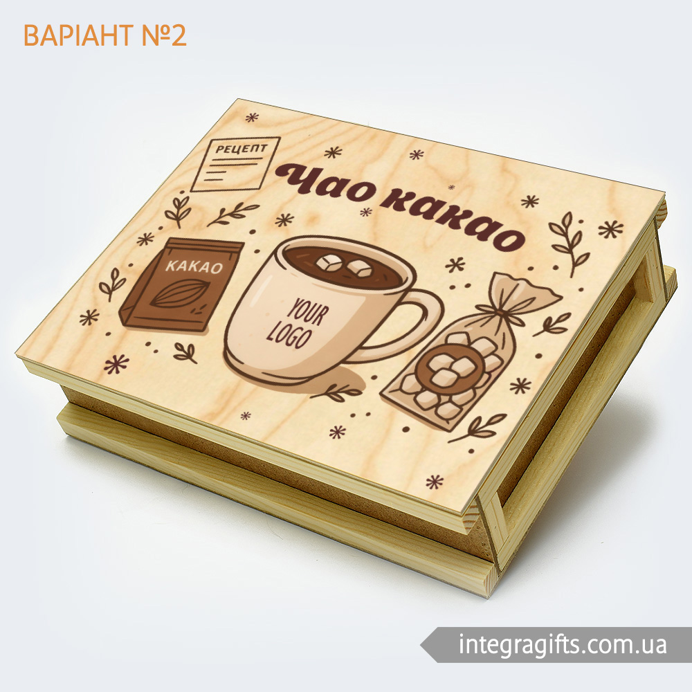 Ми подбали про те, щоб замовити корпоративні подарунки Чао Какао mini було максимально легко. Розроблено кілька видів варіантів дизайну друку на кришці, етикетках, а також листівках. Все, що потрібно - це тільки визначитися з варіантом.