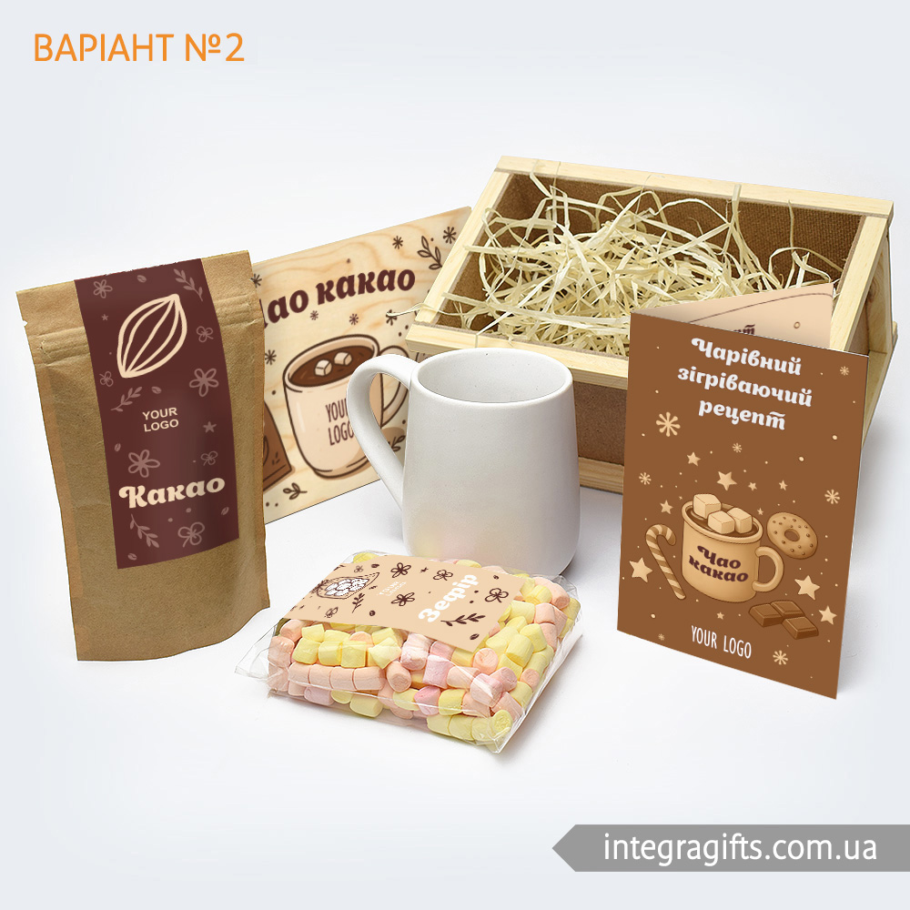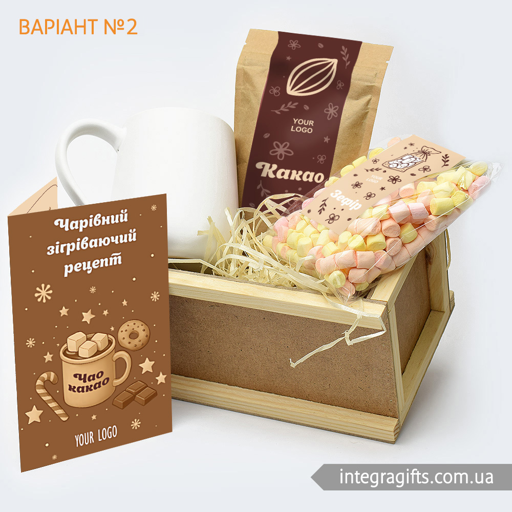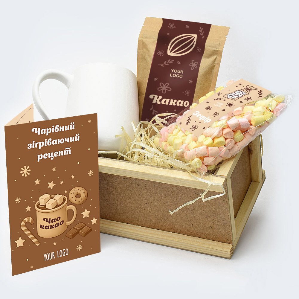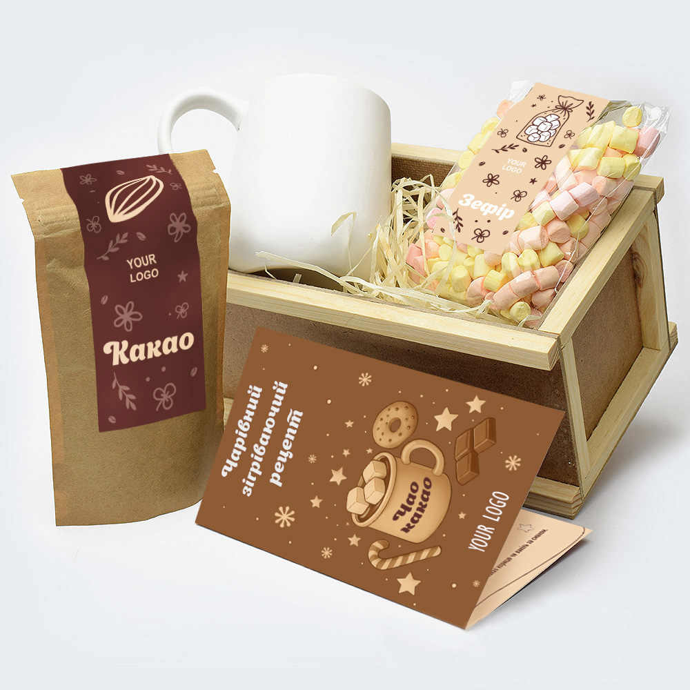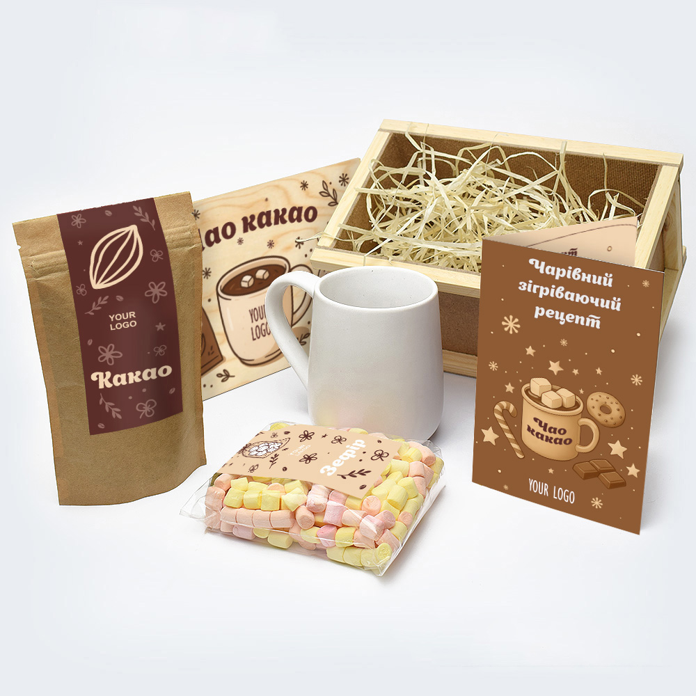 Теплий та затишний подарунок для колег та партнерів. Завжди актуальний, особливо взимку, коли так хочеться дива та тепла. Какао – дуже корисний і смачний напій, що має безліч корисних властивостей, з легкістю переносить будь-якого дорослого у веселе та безтурботне дитинство, дарує відчуття затишку та тепла.